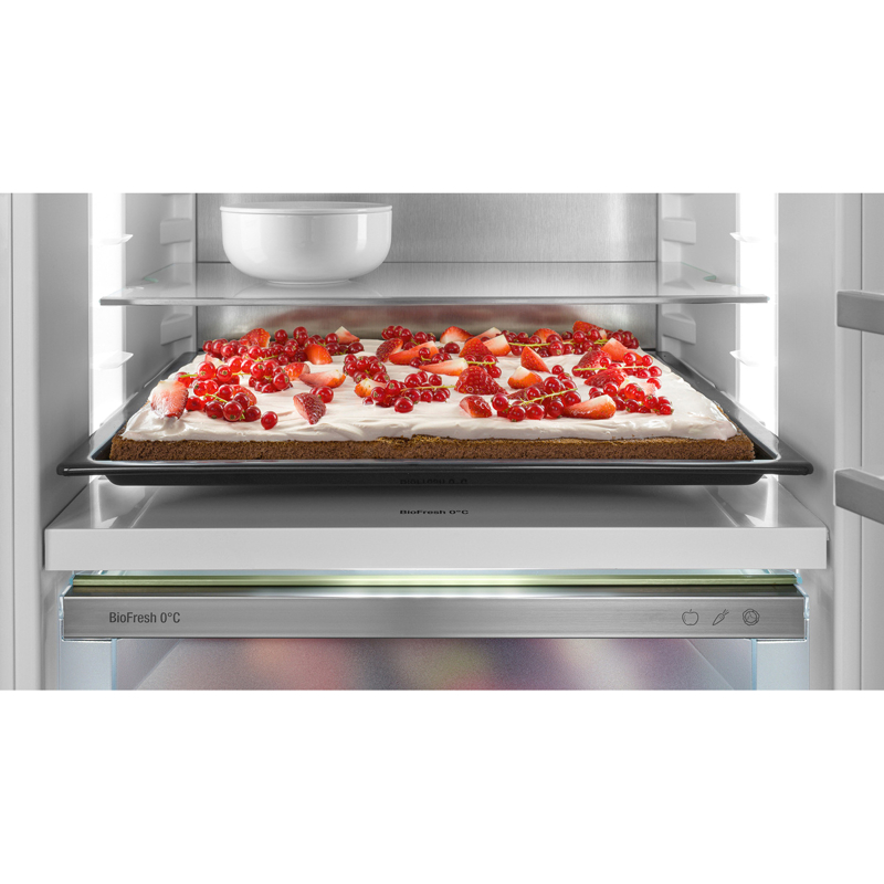 Хотите, чтобы домашний фруктовый пирог оставался свежим? Или приготовленная пицца, которую нужно будет поставить в духовку позже? Просто вставьте противень в ваш Liebherr – в нём достаточно места для хранения противня. Особенно практично: противень можно задвигать и выдвигать при открытой на 90° двери.