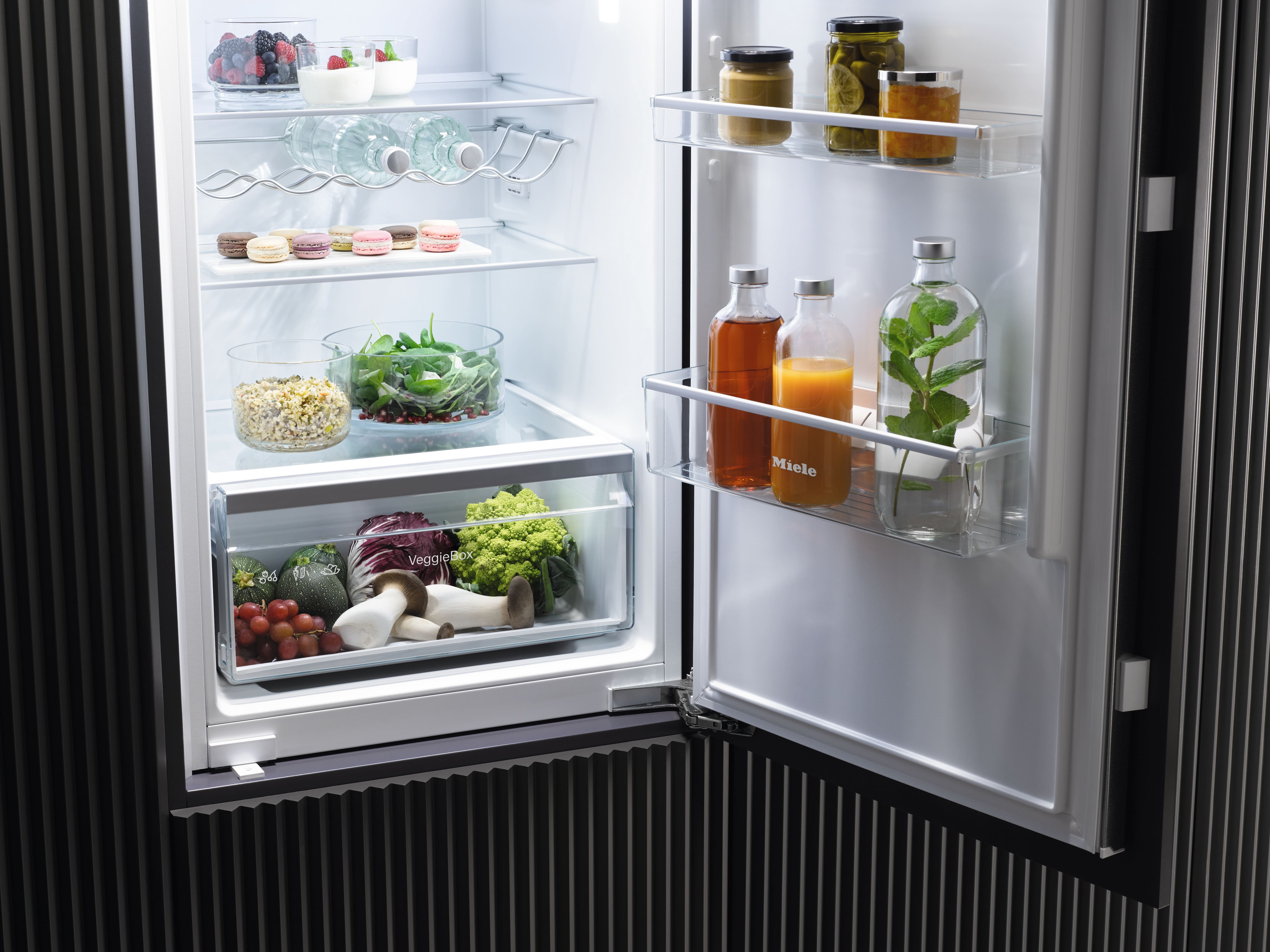 Встраиваемый холодильник со светодиодной подсветкой и суперохлаждением для большего удобства.