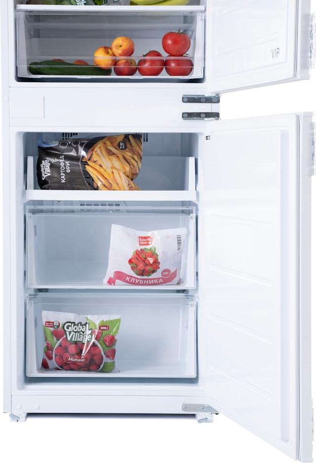 Современный холодильник с системой No Frost (общий объем 267 л). Энергопотребление класса A++. Удобное электронное управление с дисплеем. Вместительная система хранения с 4 стеклянными полками и 2 ящиками для овощей. Сигнализация открытой двери. Оптимальное решение для семьи - 195 л холодильное + 72 л морозильное отделение.