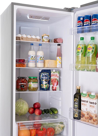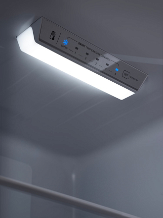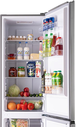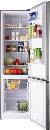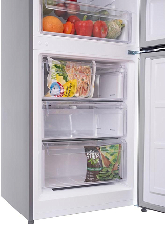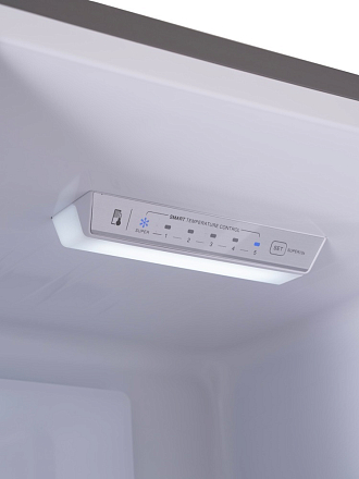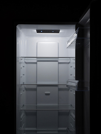Полноразмерный холодильник (320 л) с системой No Frost. Класс энергопотребления A+. Функции суперзаморозки и суперохлаждения. Электронное управление. 4 стеклянные полки и 3 ящика для хранения.
