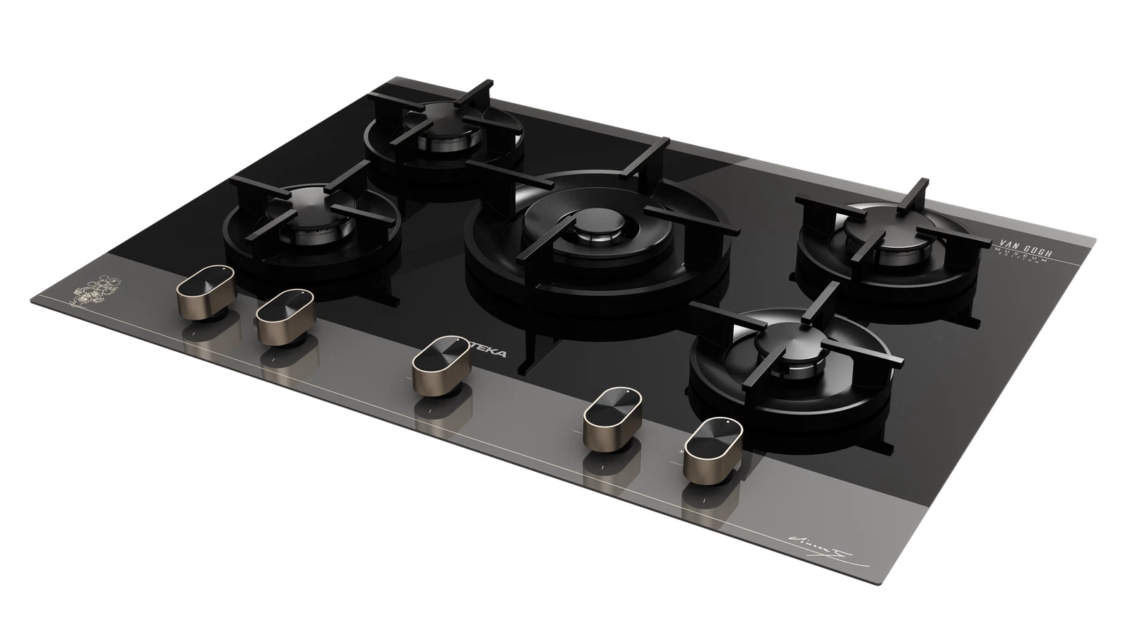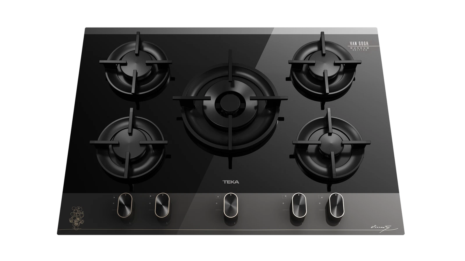 Вдохновленная полотнами великого мастера, газовая панель GBC 75 VB VG из эксклюзивной коллекции Van Gogh станет изысканным украшением вашей кухни. Черное закаленное стекло с благородной шелкографией – подписью Ван Гога и эскизом подсолнухов в искрящемся цвете шампань – превращает технику в настоящее произведение искусства.