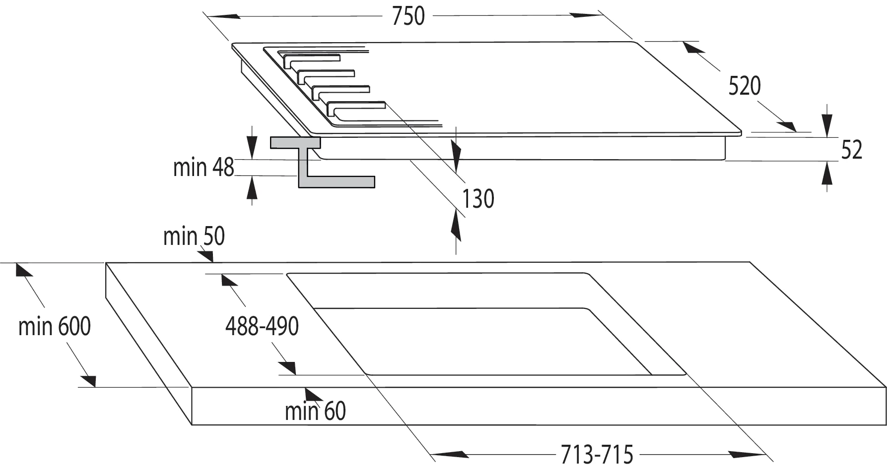 Высота ниши для встраивания, мм