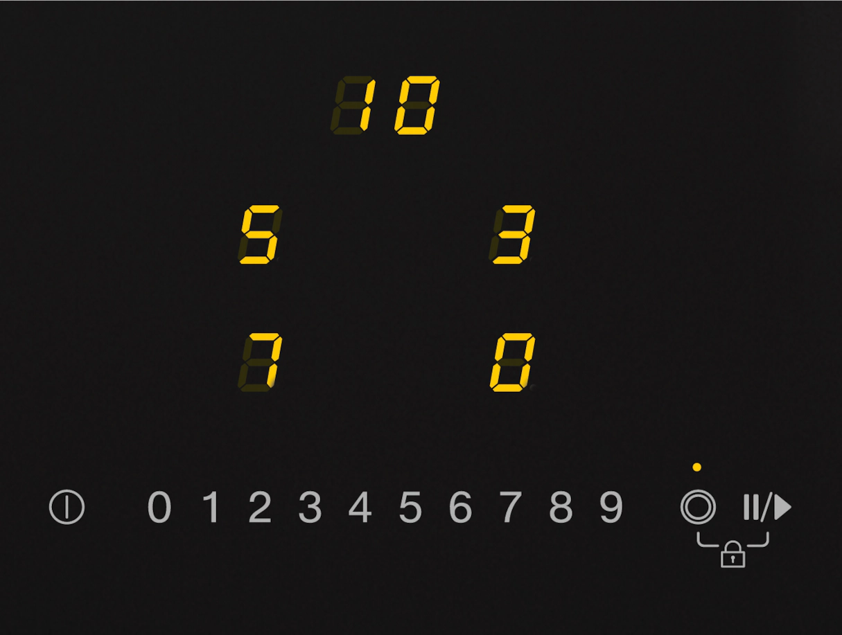 Управление EasySelect с желтой подсветкой цифр, выбором мощности на цифровой шкале для всех конфорок