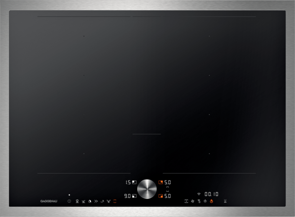 Индукционная варочная поверхность Gaggenau CI272 - это незаменимый прибор на любой кухне! Эта модель имеет 4 конфорки общей номинальной мощностью 7400 Вт. При этом 2 пары конфорок могут быть объединены в большую зону. В целях безопасности варочная панель имеет защиту от детей, автоотключение при перегреве, защиту при выкипании и индикаторы остаточного тепла.  При желании этот прибор можно установить заподлицо вровень со столешницей.