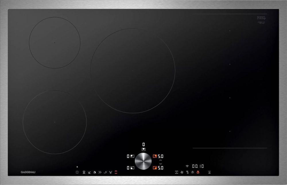 Индукционная варочная поверхность Gaggenau CI283 - это незаменимый прибор на любой кухне! Эта модель имеет 5 конфорок общей номинальной мощностью 7400 Вт. При этом 1 пара конфорок может быть объединена в большую зону. В целях безопасности варочная панель имеет защиту от детей, автоотключение при перегреве, защиту при выкипании и индикаторы остаточного тепла.  При желании этот прибор можно установить заподлицо вровень со столешницей.