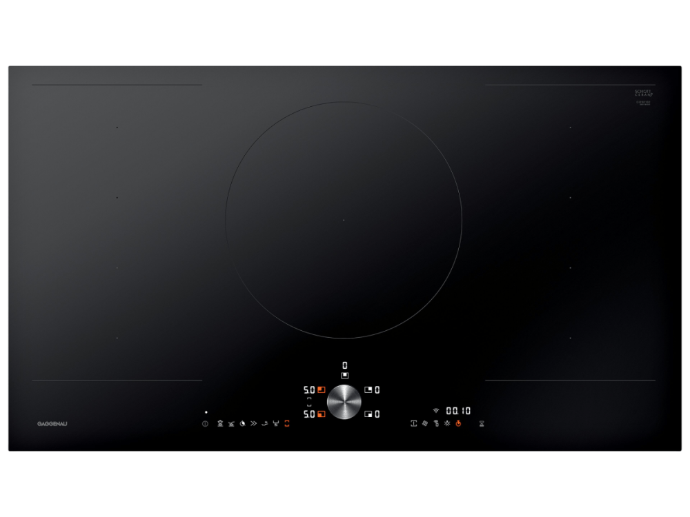 Индукционная варочная поверхность Gaggenau CI292 - это незаменимый прибор на любой кухне! Эта модель имеет 5 конфорок общей номинальной мощностью 11100 Вт. При этом 2 пары конфорок могут быть объединены в большую зону. В целях безопасности варочная панель имеет защиту от детей, автоотключение при перегреве, защиту при выкипании и индикаторы остаточного тепла.  При желании этот прибор можно установить заподлицо вровень со столешницей.