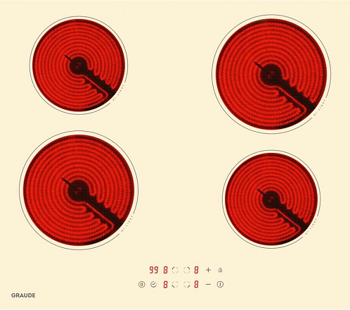 Модель 60 см с 4 зонами нагрева. 9 ступеней мощности, простое управление.