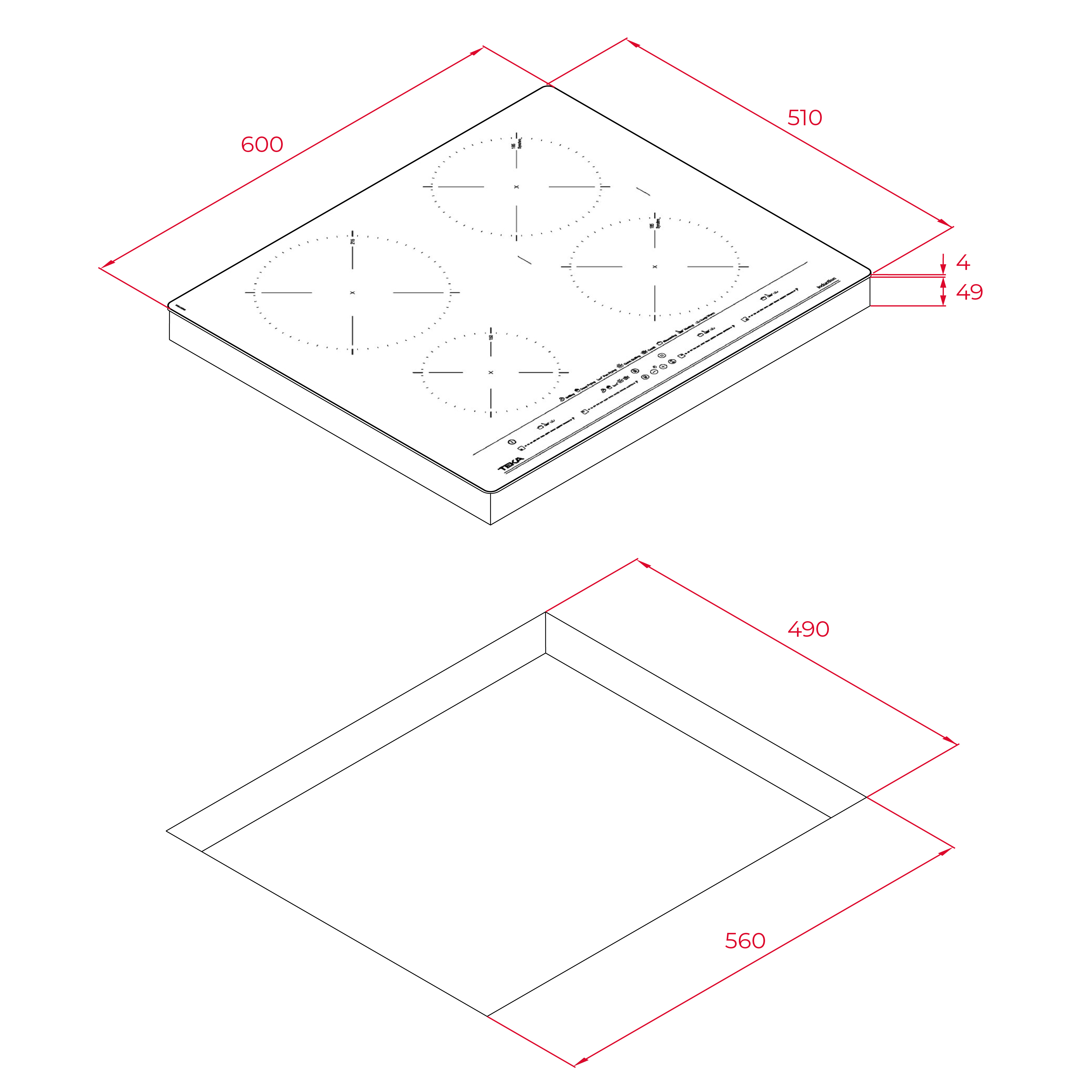 • Индикаторы остаточного тепла: включаются при температуре зоны нагрева выше 60°С
