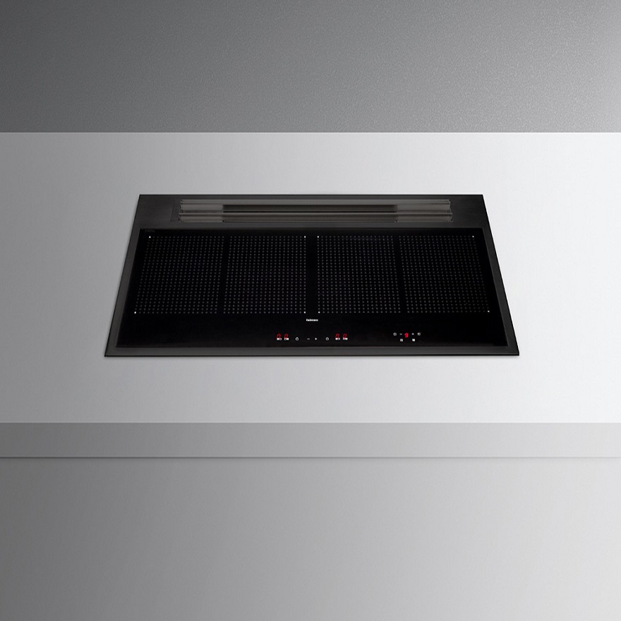Варочная панель из черного стекла с рамкой из нержавеющей стали. Стильное сочетание материалов.