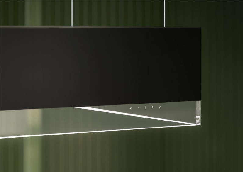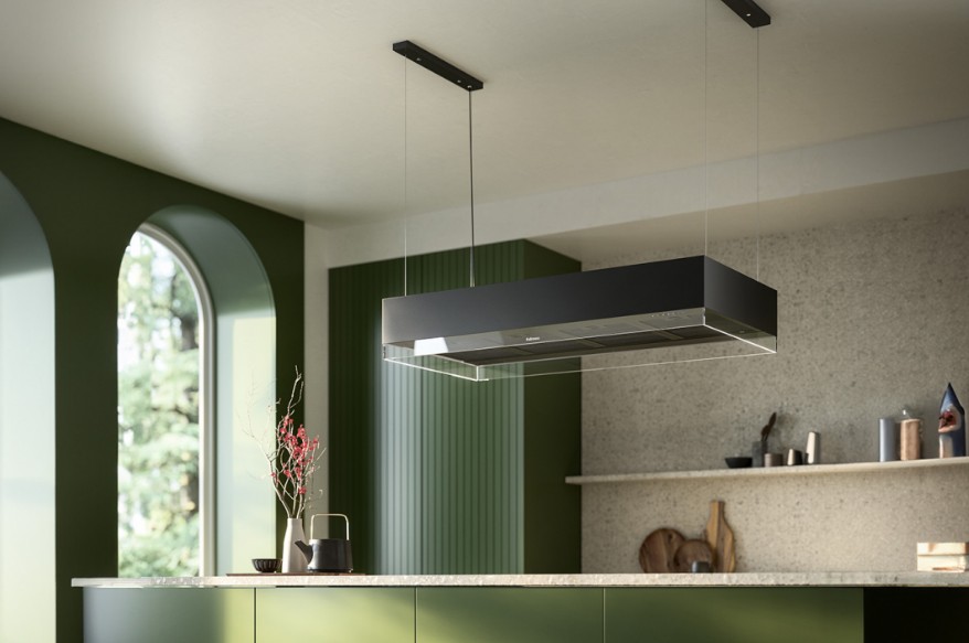 Вытяжка Falmec Vetra IS 120 из прочной стали с элементами из прозрачного стекла.