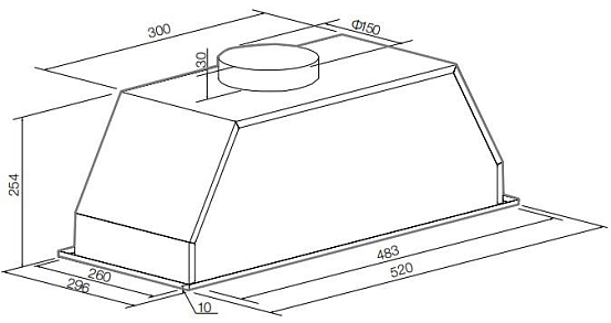 Встраиваемая вытяжка LB 52.0 с галогенной подсветкой. 3 скорости, автоматика остаточного хода. Уровень шума 57 дБ.