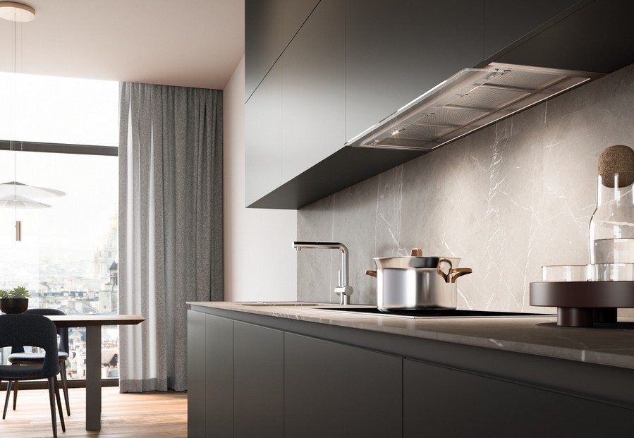 Встраиваемая вытяжка с сенсорным управлением. 4 скорости работы, производительность 1280 м³/ч. Уровень шума 55 дБ. Металлический жироулавливающий фильтр (1 шт). Угольный фильтр устанавливается отдельно. Режимы отвода и циркуляции.
