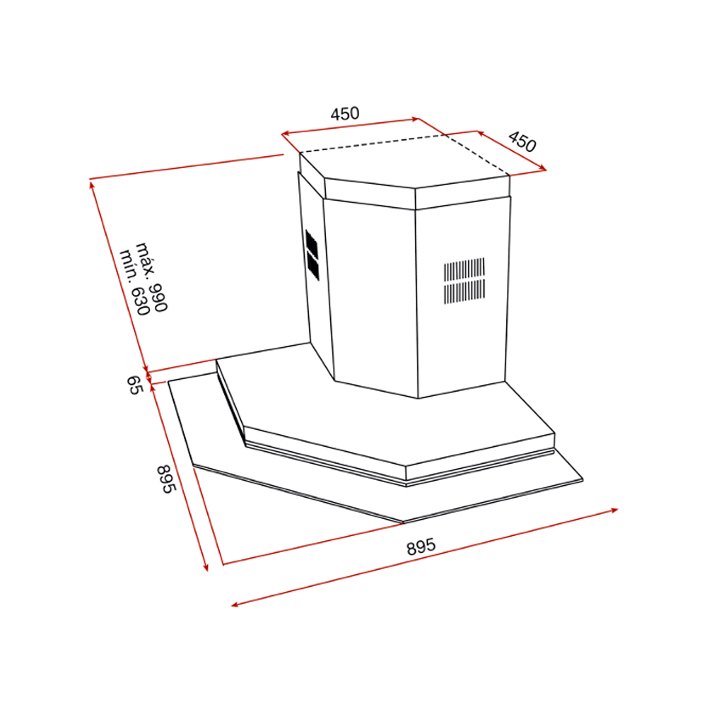 Пристенная угловая вытяжка со стеклянным крылом