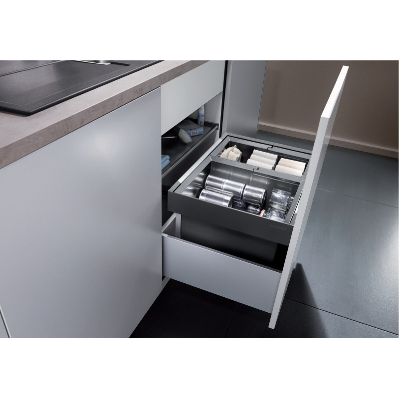Система сортировки отходов FLEXON II 60/2 Low от Blanco воплощает философию бескомпромиссного качества, инновационного дизайна и функциональности, превращая самое активное место на кухне в продуманный, эргономичный и эстетичный центр для приготовления пищи.