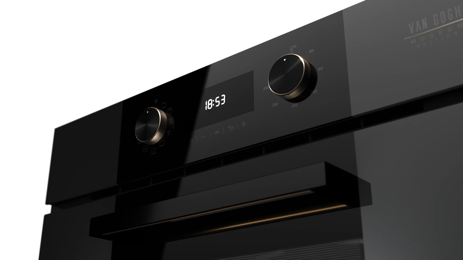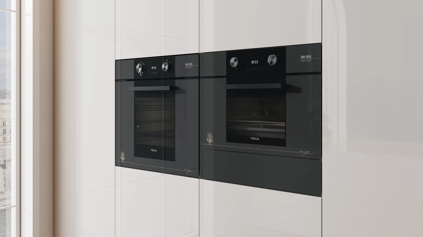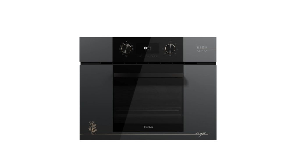 Вдохновленный шедеврами великого мастера, духовой шкаф HLC 84 C VG из эксклюзивной коллекции Van Gogh сочетает в себе художественную эстетику и многофункциональность. Фасад из черного и темно-серого стекла без рамки украшен изысканной шелкографией с подписью Ван Гога и эскизом подсолнухов в благородном цвете шампань с искристым эффектом.