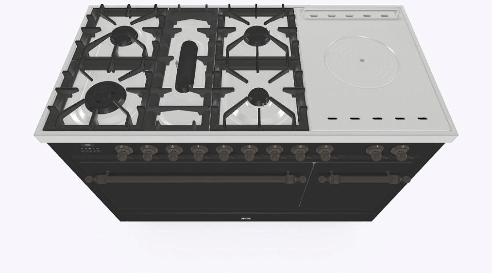 • Тип конфорок: 5 газовых, чугунная тарелка «Coupe de Feu» с кольцами