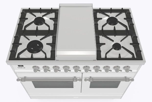 • Тип конфорок: 4 газовые конфорки, Dual конфорка, жарочная поверхность Fry Top