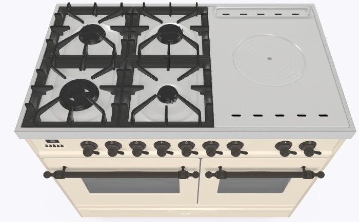 • Тип конфорок: 4 газовые конфорки, WOK конфорка, жарочная поверхность Coup de Feu