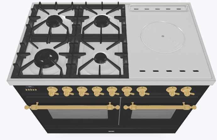 • Тип конфорок: 4 газовые конфорки, WOK конфорка, жарочная поверхность Coup de Feu