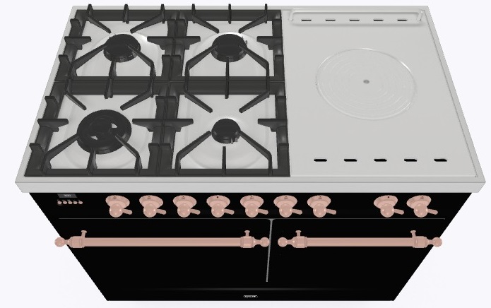 • Тип конфорок: 4 газовые конфорки, WOK конфорка, жарочная поверхность Coup de Feu