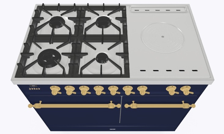 • Тип конфорок: 4 газовые конфорки, WOK конфорка, жарочная поверхность Coup de Feu