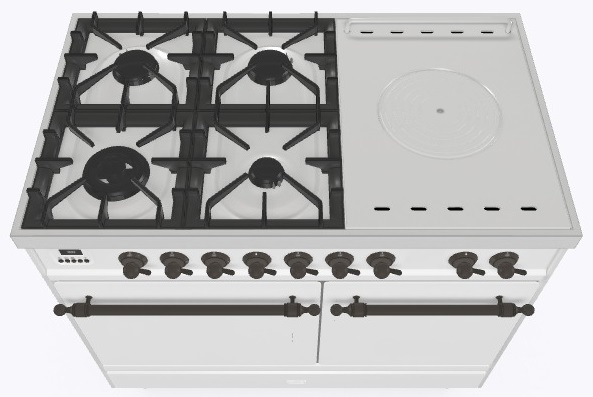 • Тип конфорок: 4 газовые конфорки, WOK конфорка, жарочная поверхность Coup de Feu