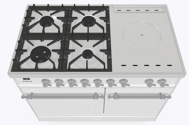 - Тип конфорок: 4 газовые конфорки, WOK конфорка, жарочная поверхность Coup de Feu