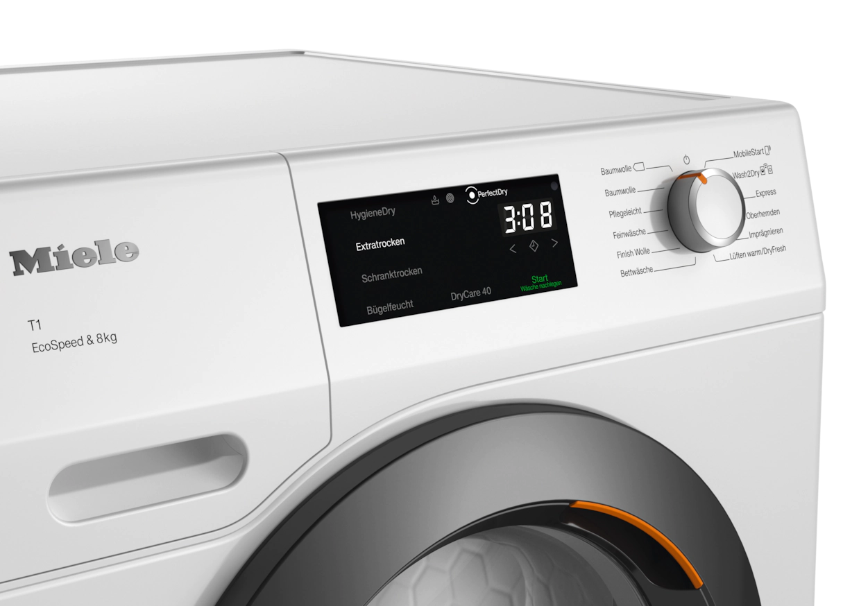 Сушильная машина с тепловым насосом T1: с A+++ и DryCare 40 для эффективной и бережной сушки.