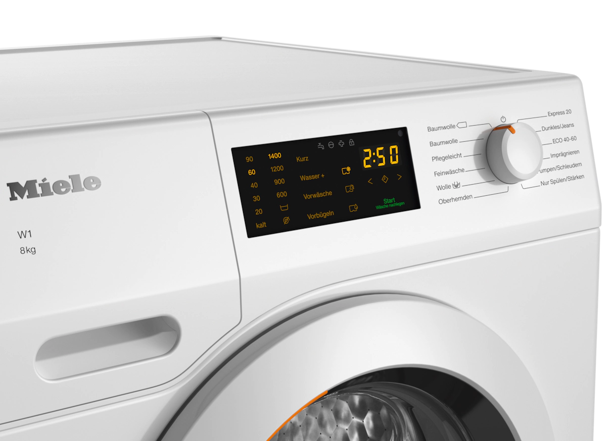Стиральная машина W1 с фронтальной загрузкой: с сотовым барабаном на 1–8 кг и функцией предварительной глажки для бережного ухода за бельем.