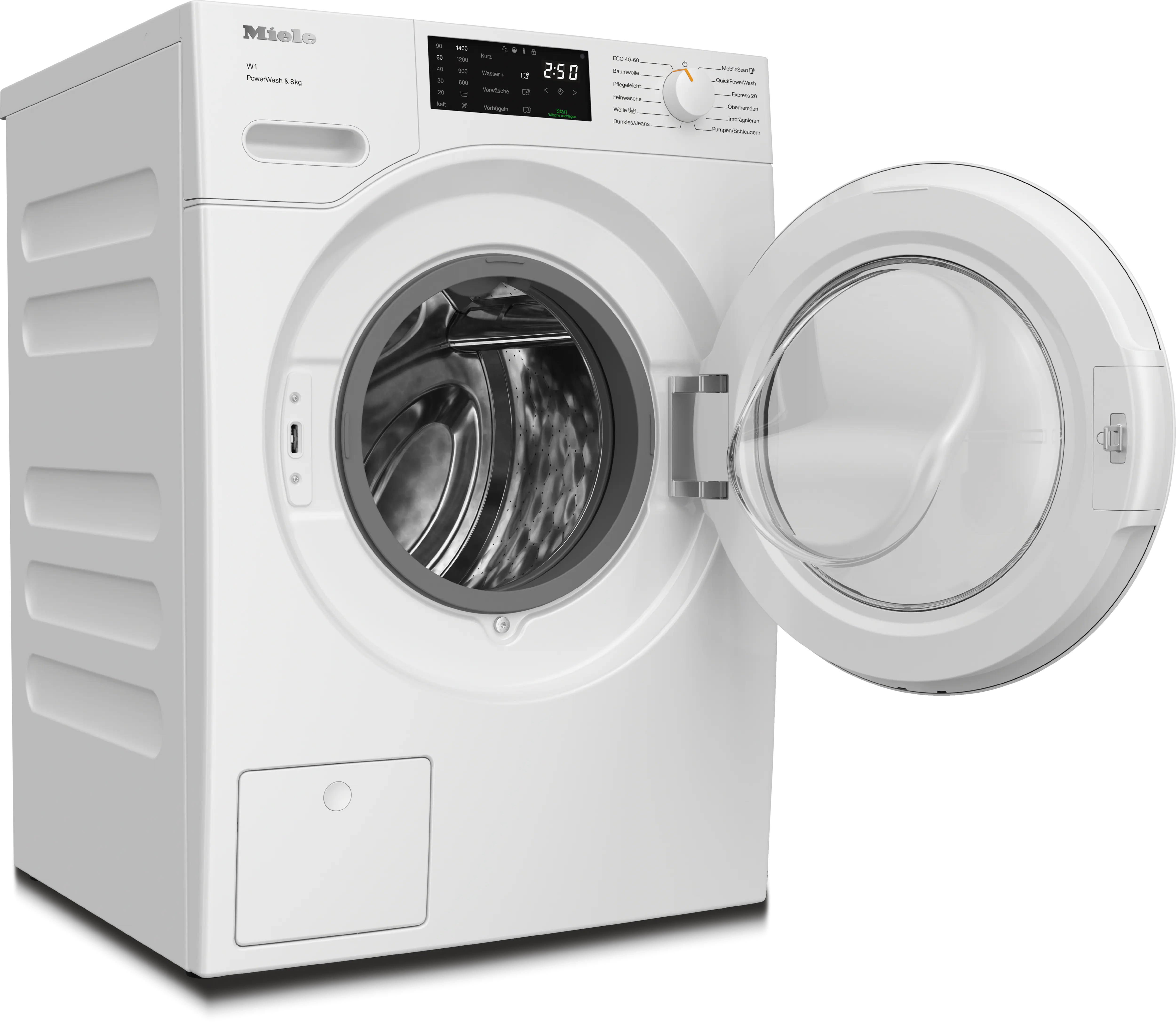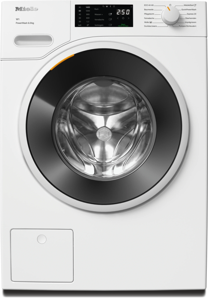 С максимальной загрузкой 8 кг и скоростью отжима 1400 об/мин WWB 360 WCS предлагает 11 специализированных программ, включая режимы для хлопка, деликатных тканей, шерсти, экспресс-стирку и обработку паром. Технология WaterControl-System обеспечивает надежную защиту от протечек, а система Miele@home позволяет управлять процессом стирки дистанционно.