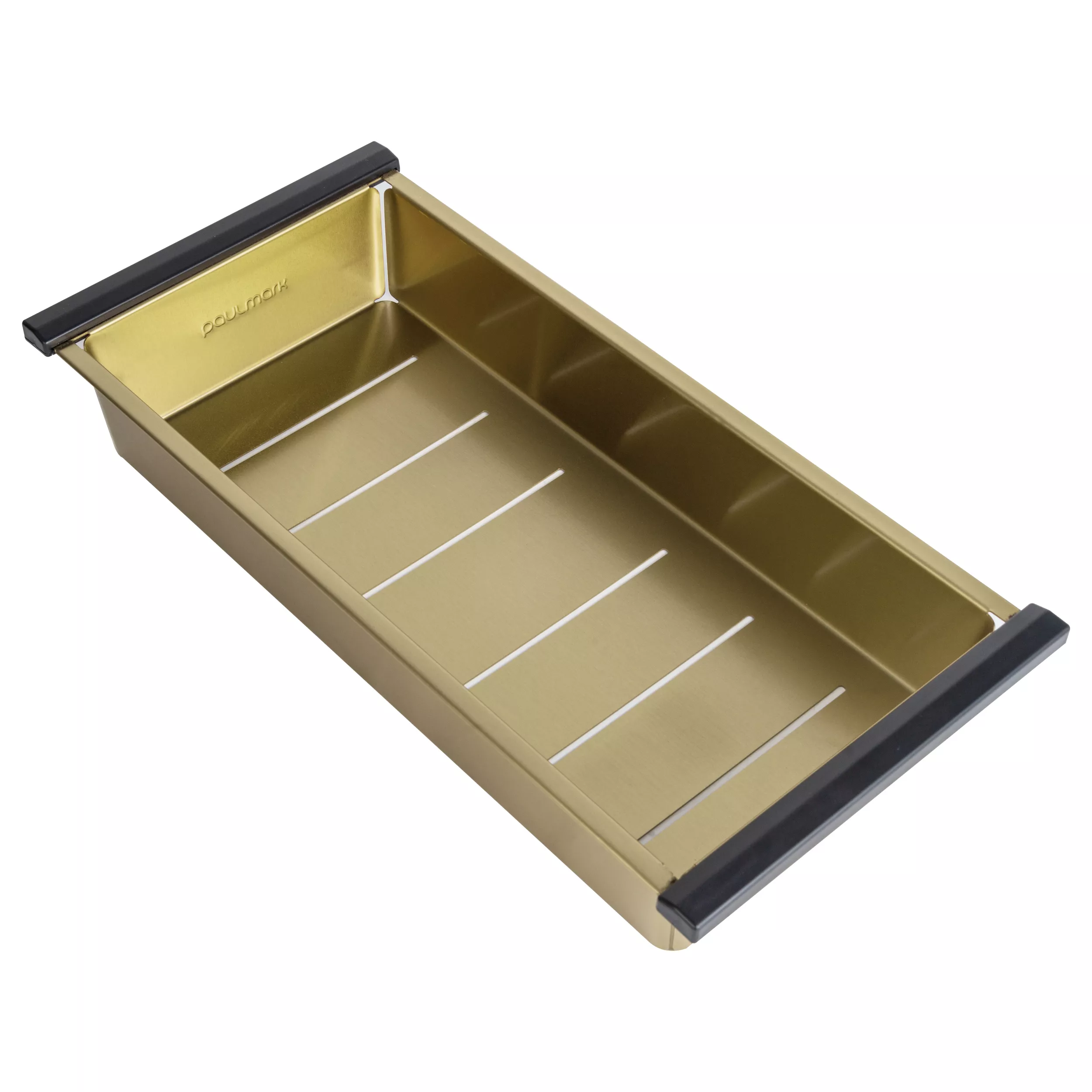 Коландеры Paulmark изготовлены из нержавеющей стали ASIS 304, устойчивы к перепадам температур и к нагрузке. Используются для мытья и размораживания продуктов. Устанавливаются на бортики мойки и в специальные ступеньки моек серии PRO. Размер отверстий в донной части не позволит выпасть даже мелким ягодам и в то же время не препятствует свободному стоку воды. Глубина коландера - 6 см.