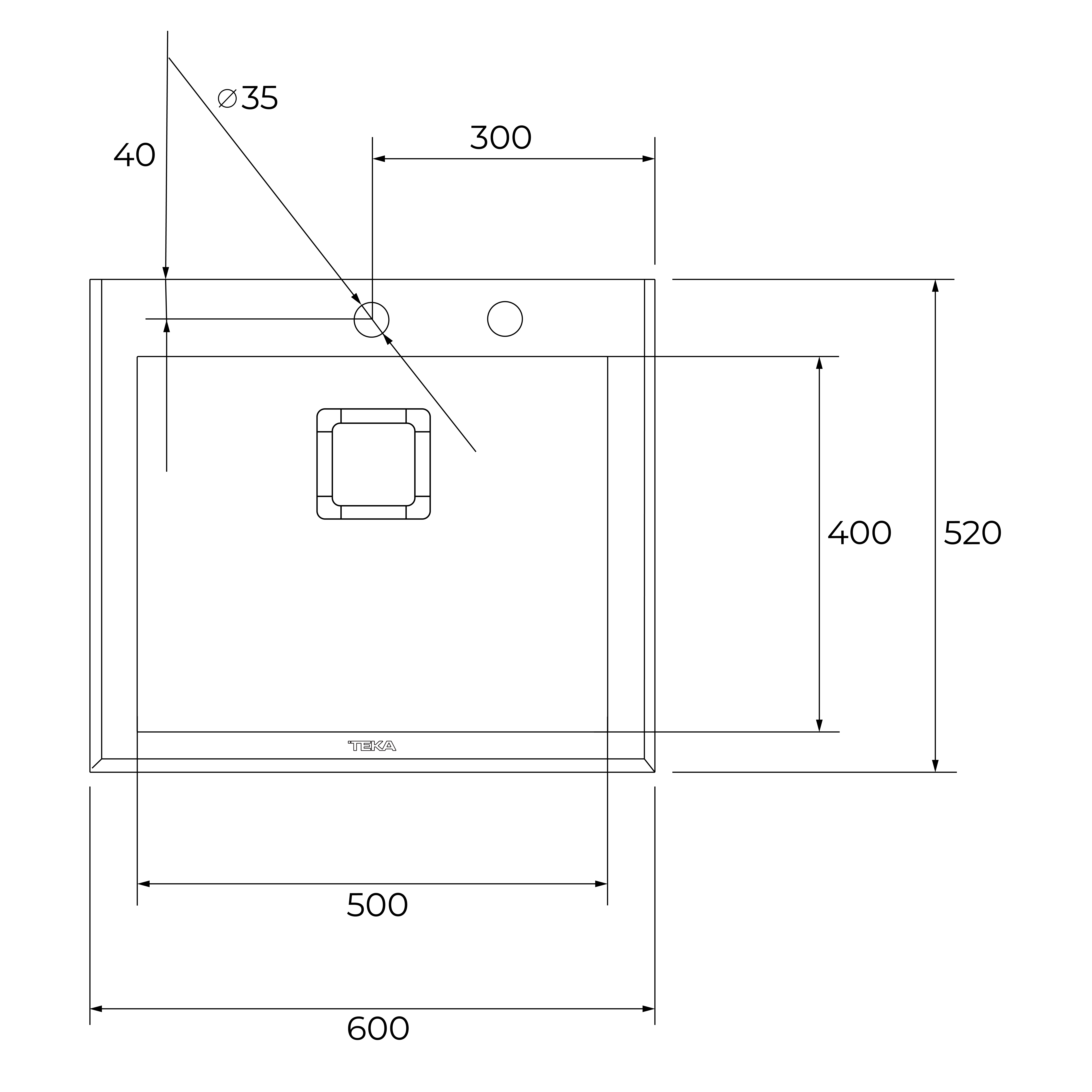 • Внешние размеры: 600 x 520 мм