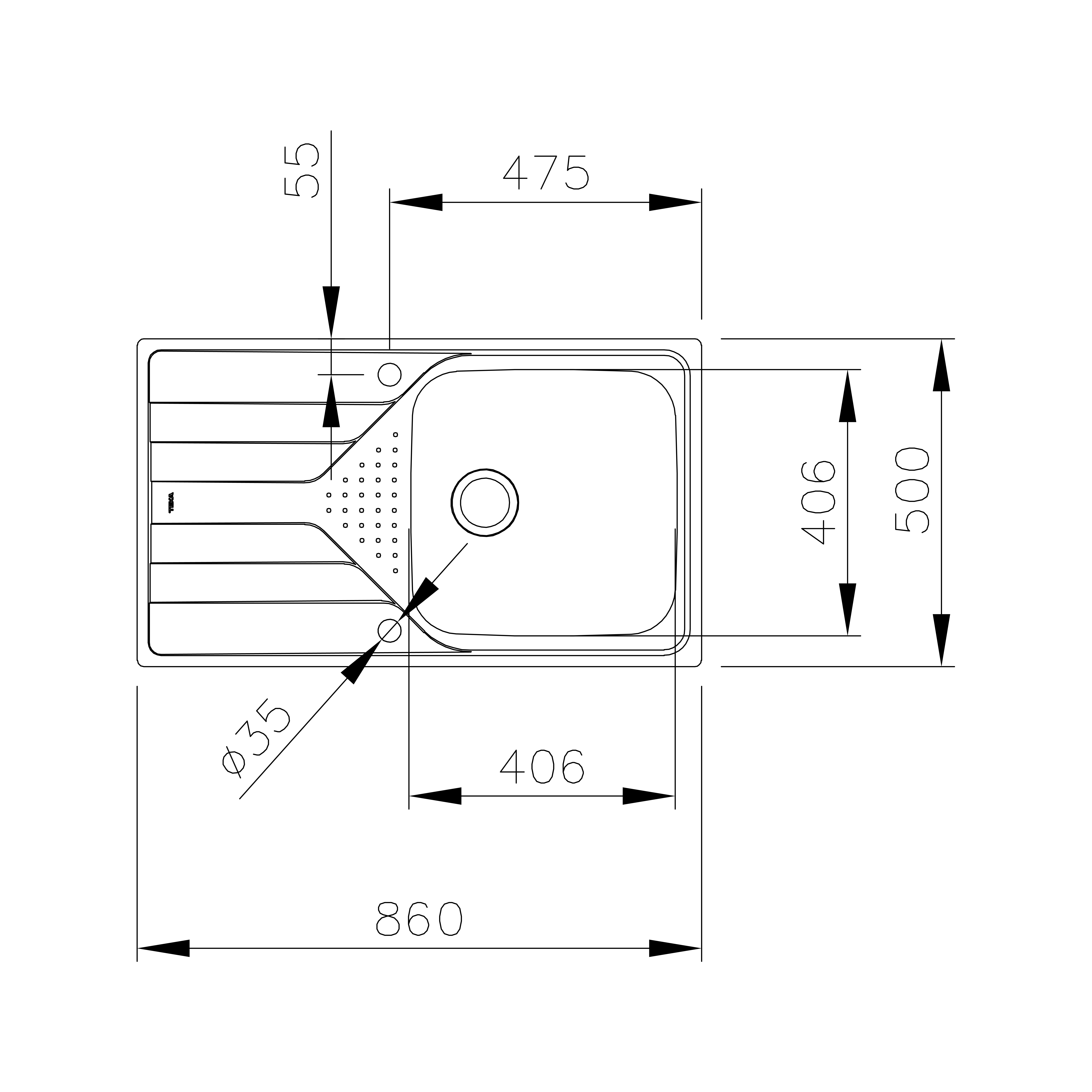 • Мойка с 1-ой основной чашей и 1 одной дополнительной чашами