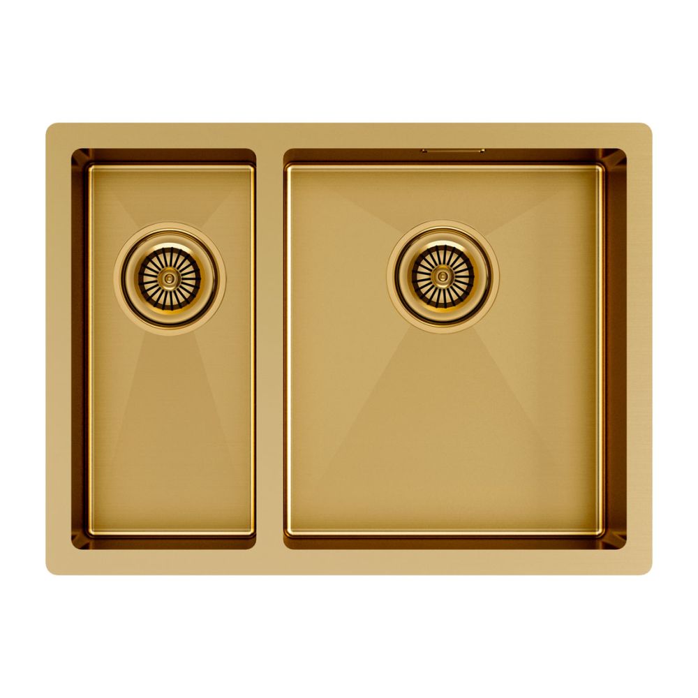 Габариты мойки составляют 590х440 мм, а дополнительная чаша шириной 180 мм расширяет функционал. Возможен подстольный, накладной монтаж или монтаж вровень со столешницей.