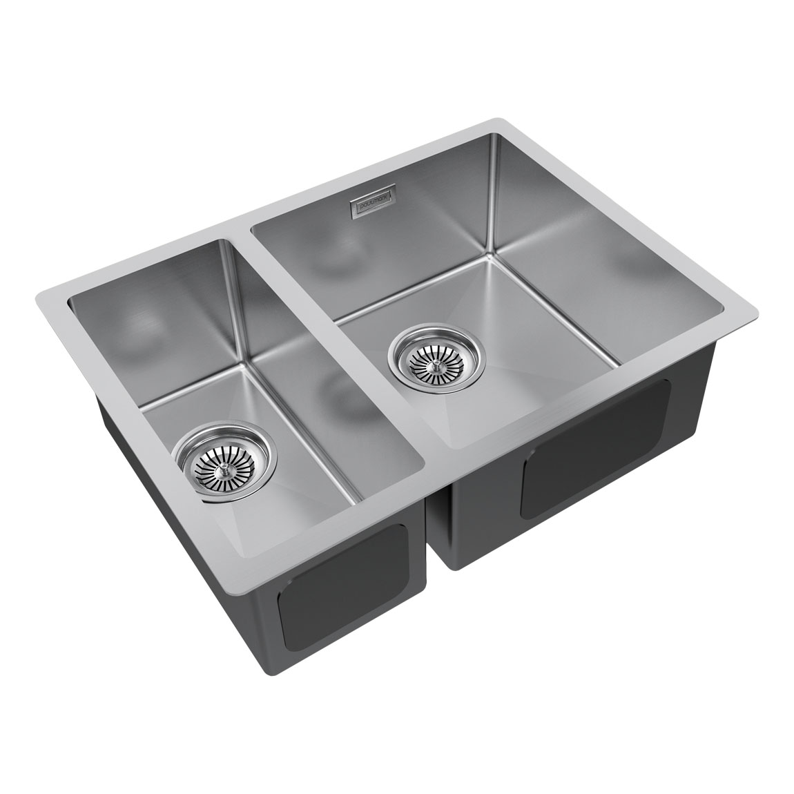 Габариты мойки составляют 590х440 мм, а дополнительная чаша шириной 180 мм расширяет функционал. Возможен подстольный, накладной монтаж или монтаж вровень со столешницей.