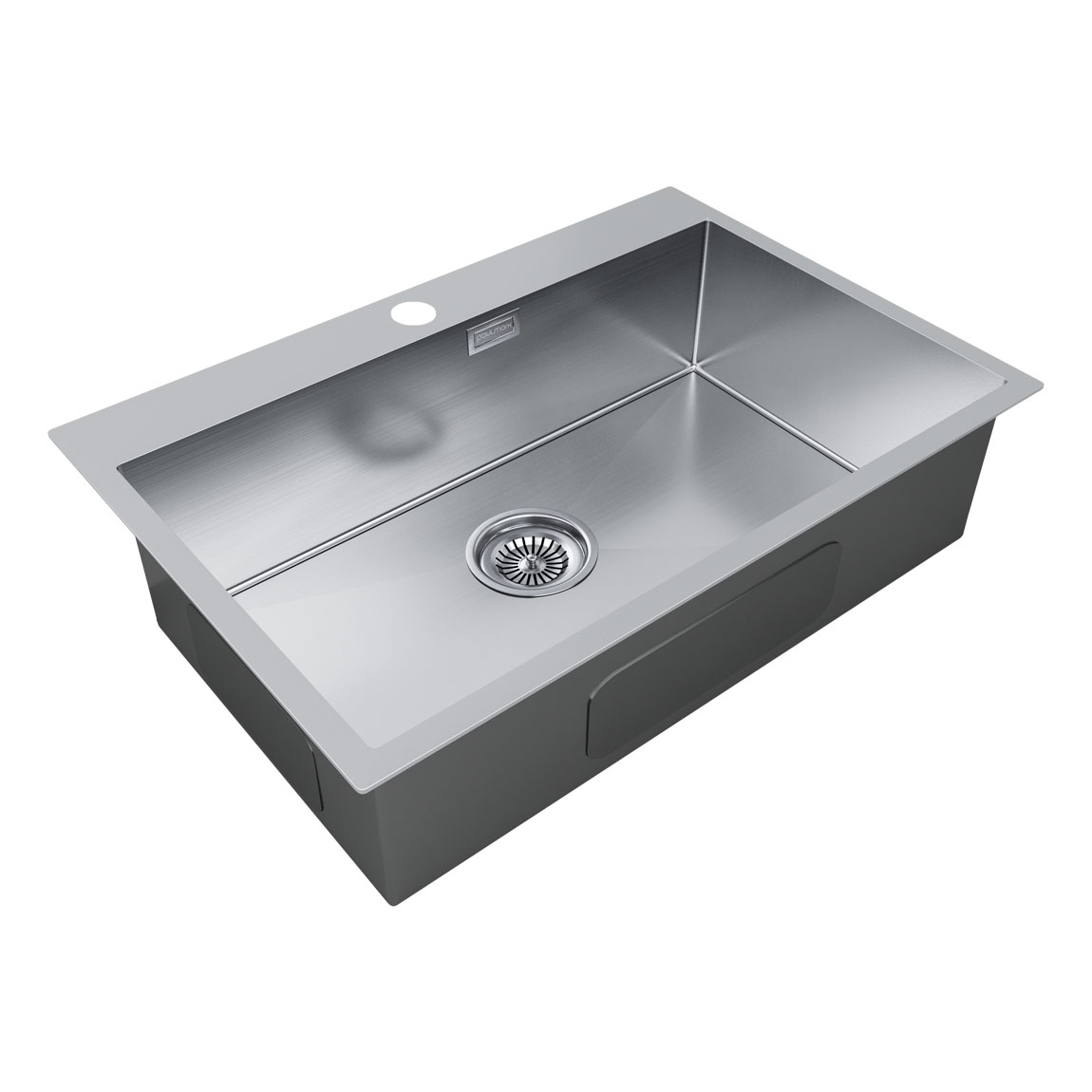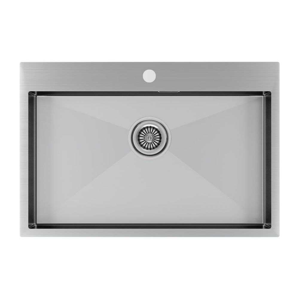 Габариты мойки составляют 750х510 мм, вместительная чаша обеспечивает максимальное пространство для мытья посуды. Возможен монтаж вровень со столешницей или врезной монтаж мойки.