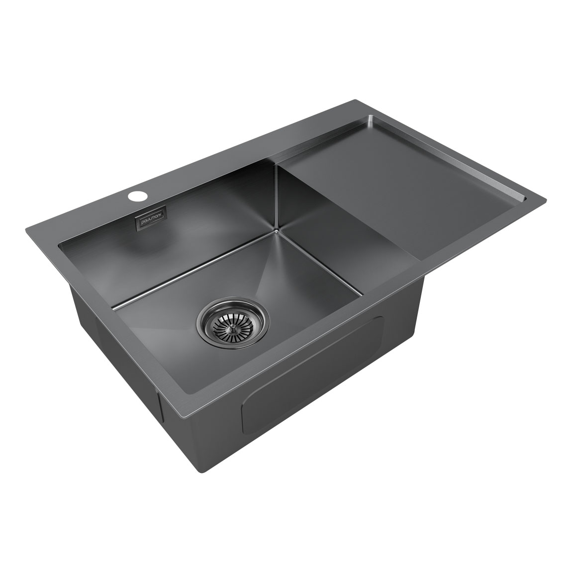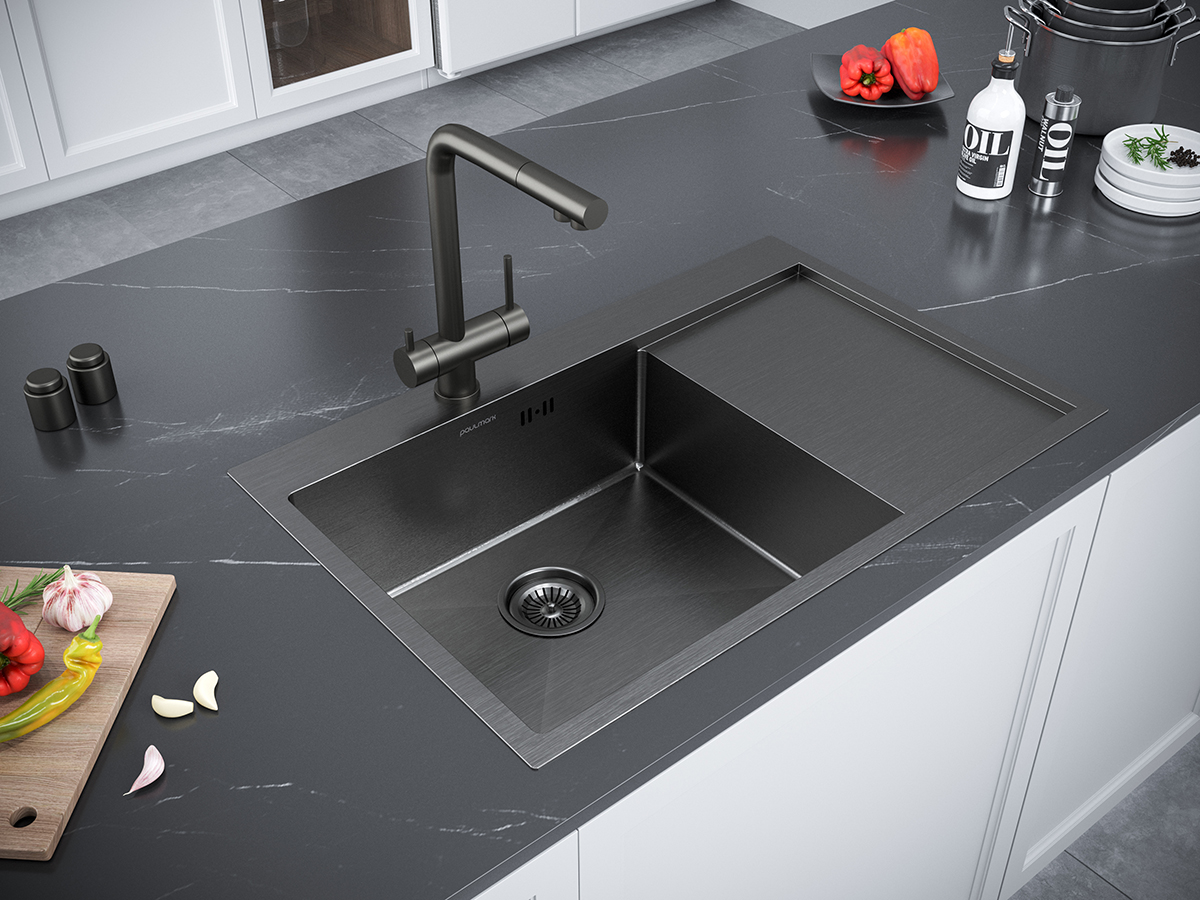 Мойки KRONER 78F в оттенках BG и GM имеют прочное PVD покрытие, которое нанесено на нержавеющую сталь. Оно особенно устойчиво к появлению царапин и истиранию, не содержит микротрещин и является экологически чистым.