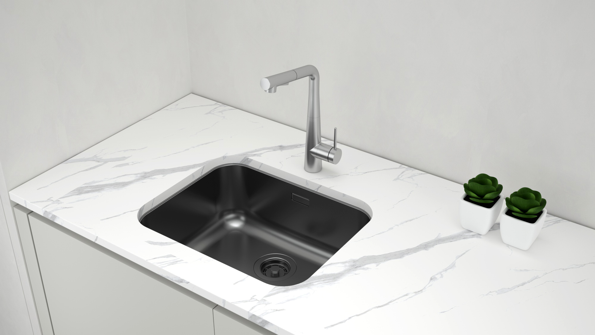 Мойки VELLO UNI могут быть установлены как врезным способом поверх столешницы, так и под столешницу (подстольный монтаж).