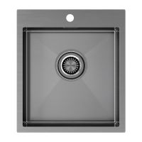 PVD покрытие в цветах воронёная сталь / брашированное золото (GM / BG) на внешней поверхности мойки для кухни VELTEN 45 – это особый метод напыления, путём прямой конденсации пара наносимого материала, который позволяет поверхности мойки быть особенно устойчивой к появлению царапин и истиранию. Такое покрытие является не только декоративным, но и защитным слоем, оно плотно и равномерно прилегает к основе, не содержит микротрещин.