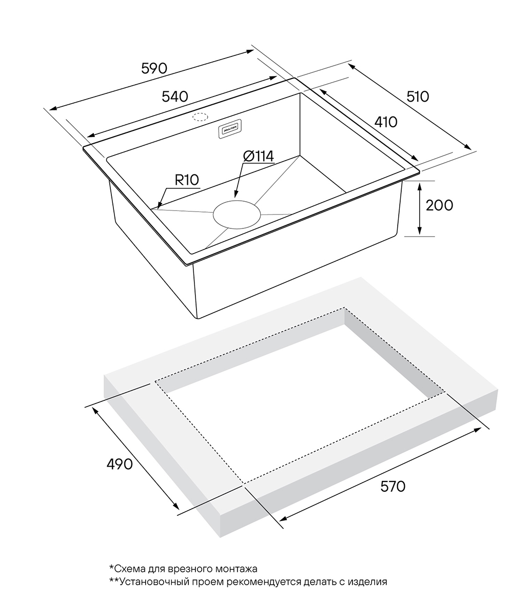 - Комплект крепежей для врезного монтажа; - Отводная арматура (слив-перелив); - Сифон бутылочного типа с подключением посудомоечной машины (ПММ).