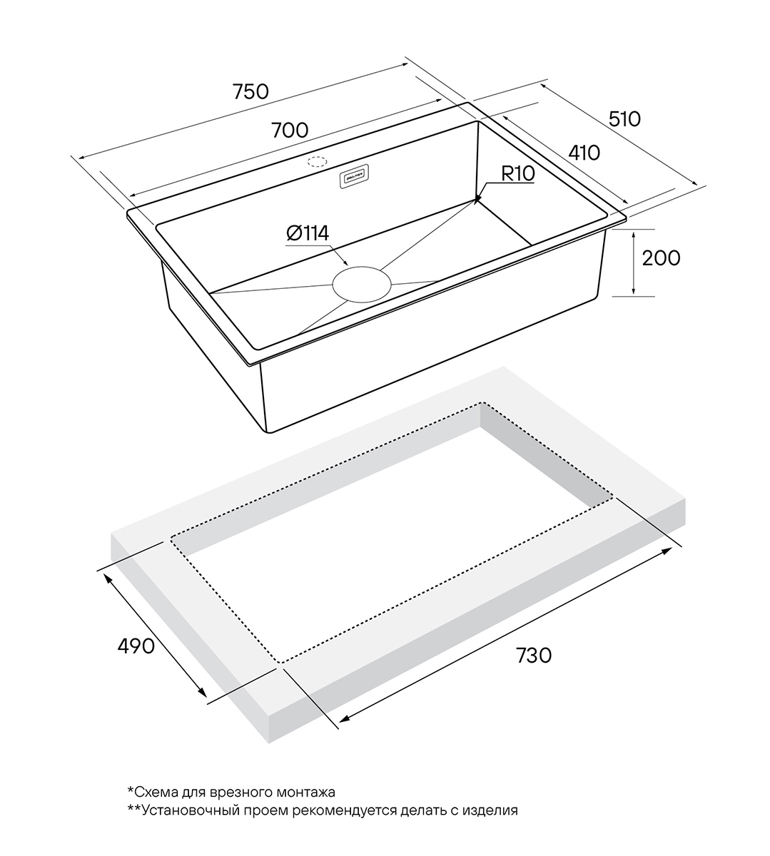 Кухонная мойка бренда Paulmark VELTEN 75, изготовленная из нержавеющей стали AISI 304.