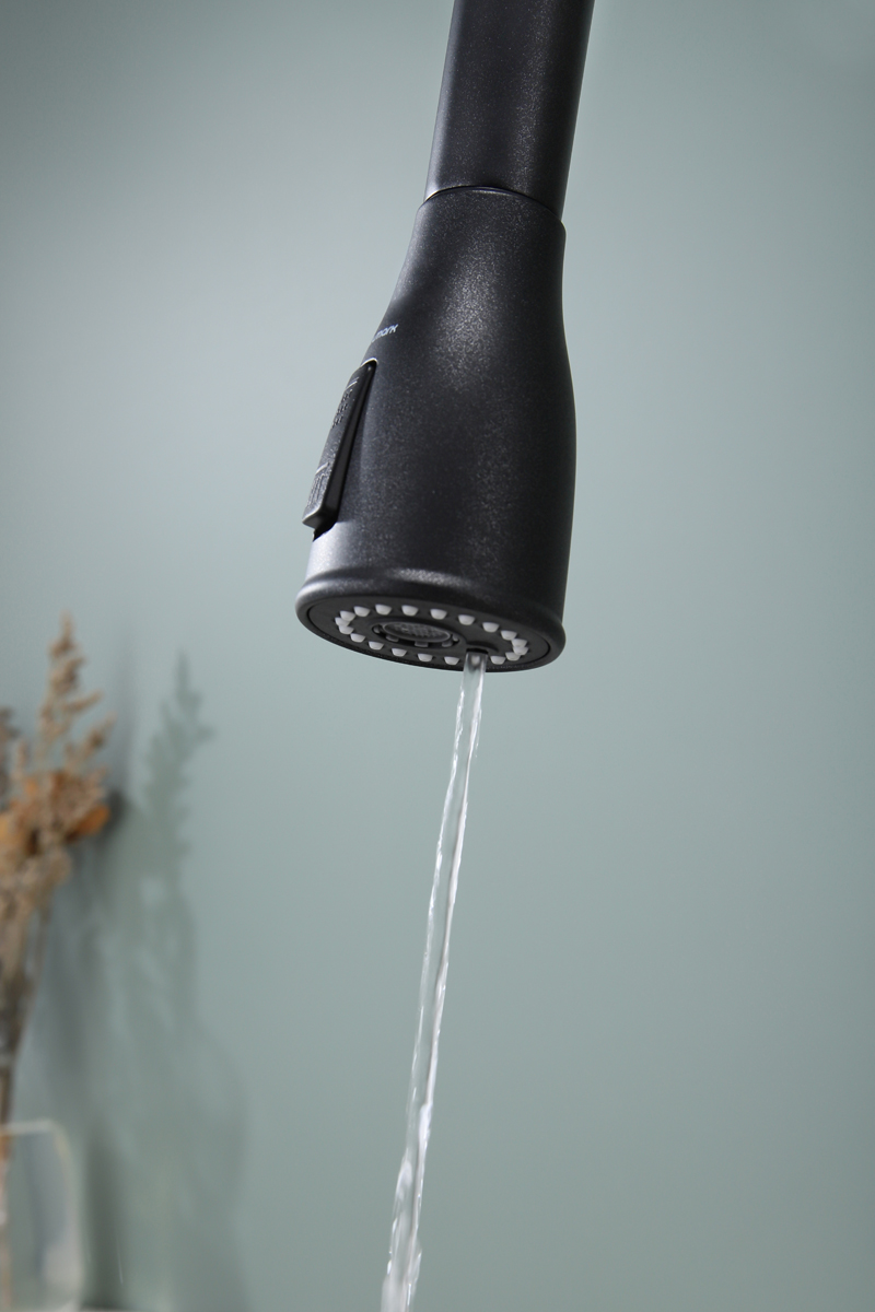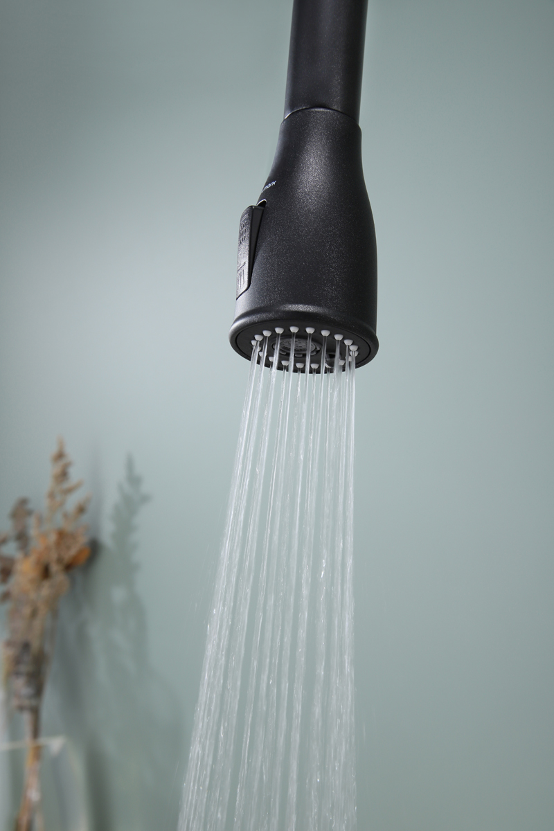 Помимо подачи стандартной струи, смеситель оснащен функцией подачи воды в режиме «душ» для идеального промывания посуды и продуктов