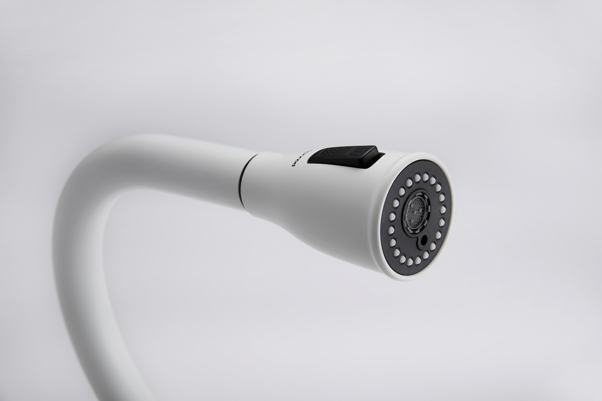 Помимо подачи стандартной струи, смеситель оснащен функцией подачи воды в режиме «душ» для идеального промывания посуды и продуктов