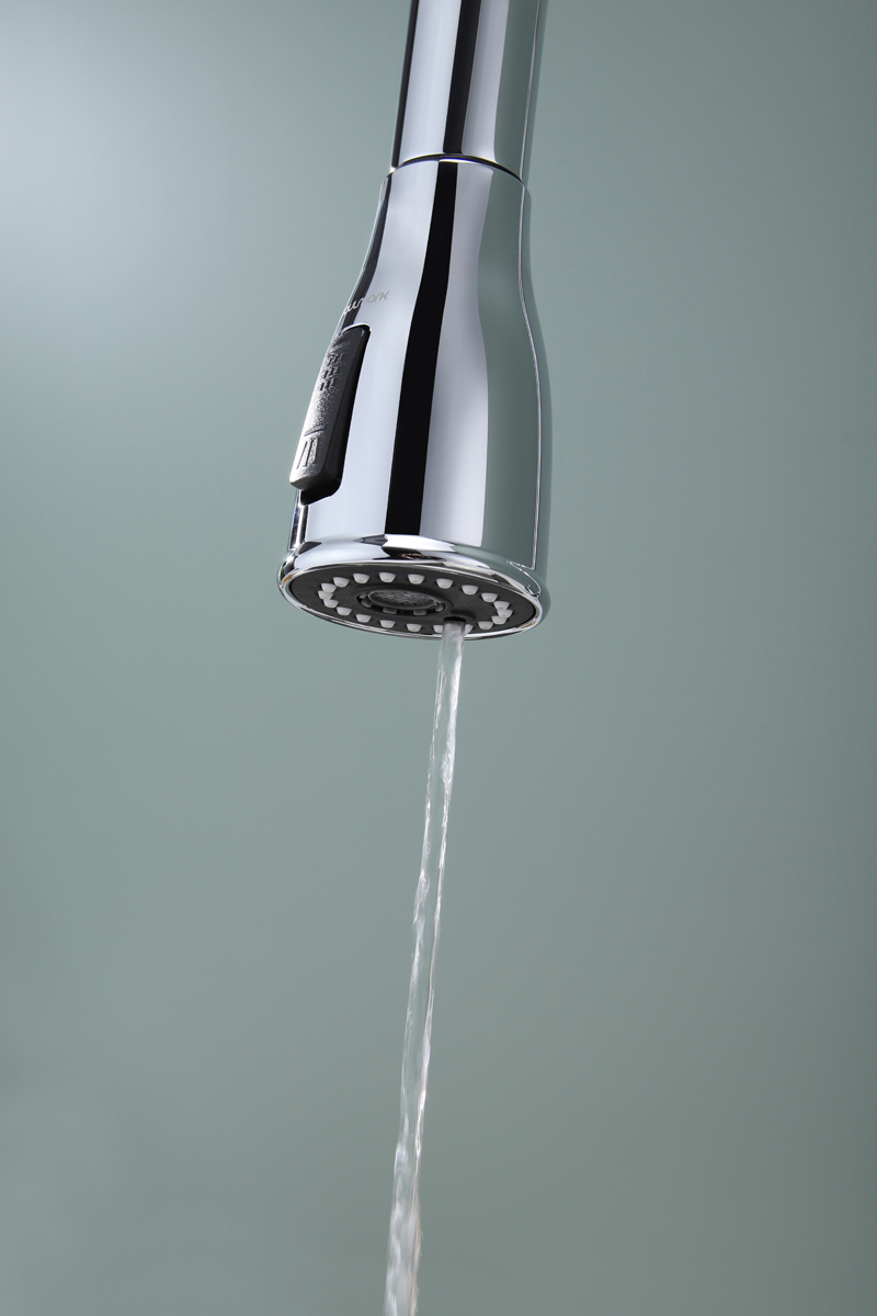 Помимо подачи стандартной струи, смеситель оснащен функцией подачи воды в режиме «душ» для идеального промывания посуды и продуктов