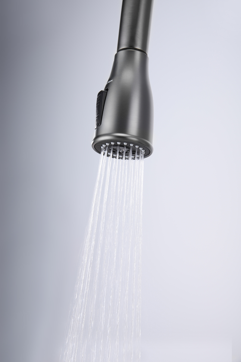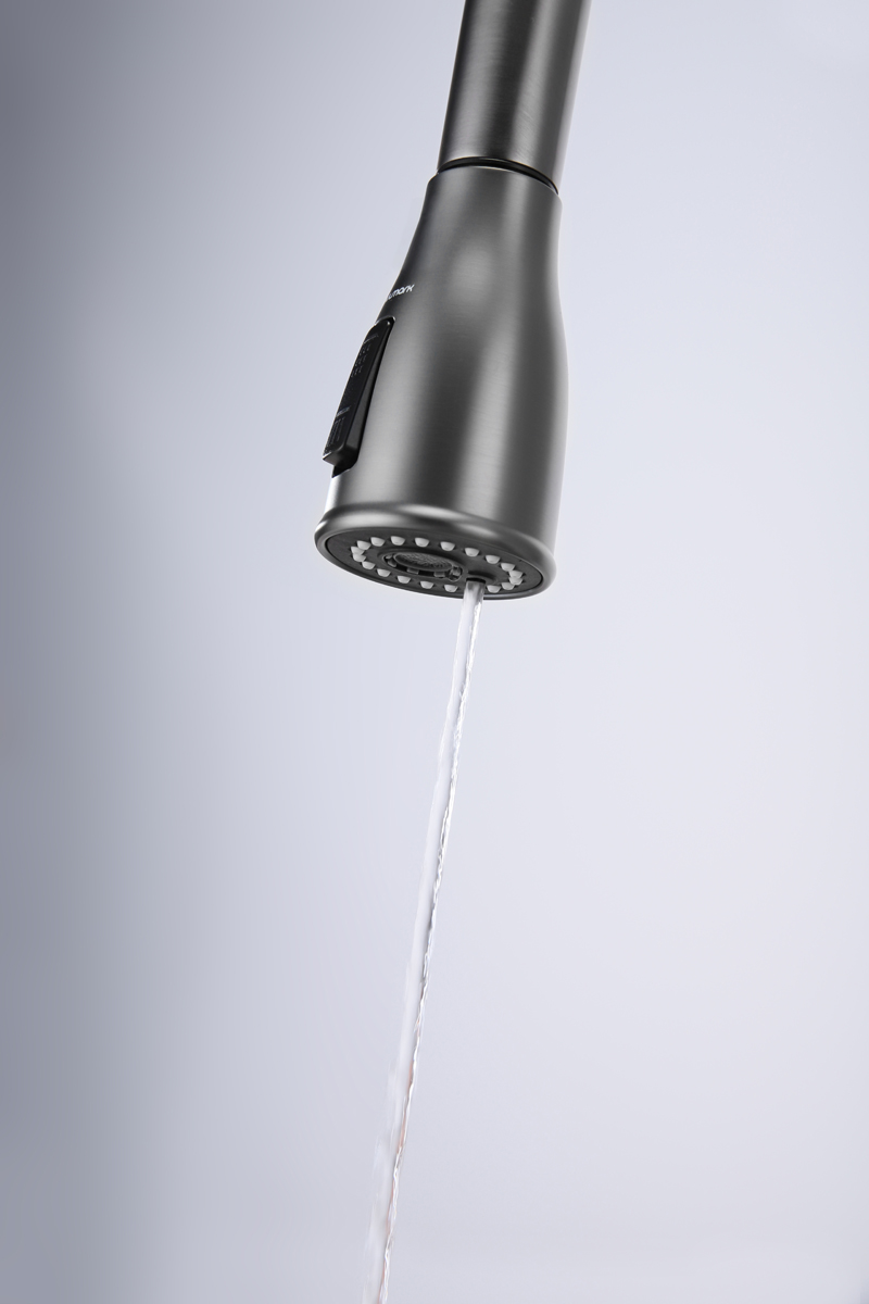 Помимо подачи стандартной струи, смеситель оснащен функцией подачи воды в режиме «душ» для идеального промывания посуды и продуктов