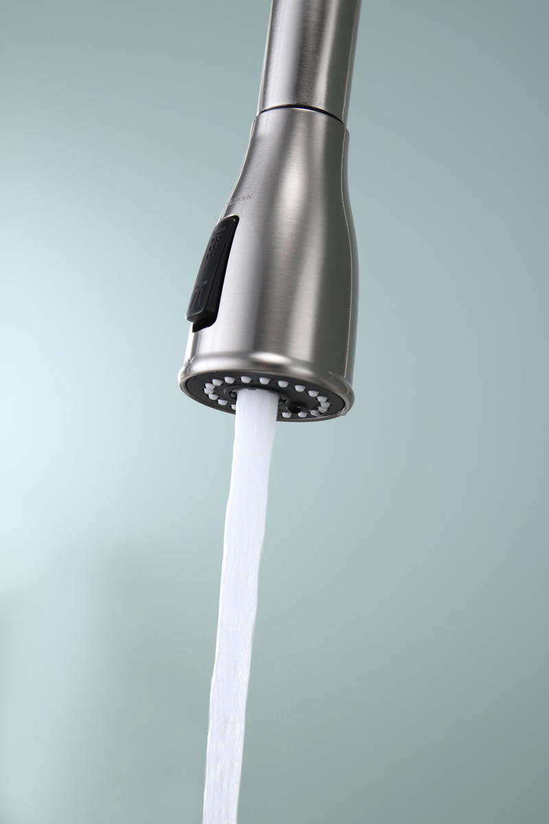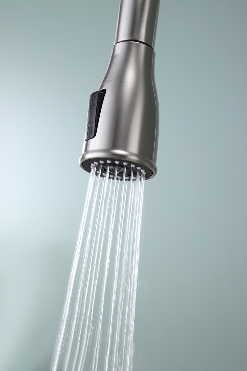Помимо подачи стандартной струи, смеситель оснащен функцией подачи воды в режиме «душ» для идеального промывания посуды и продуктов