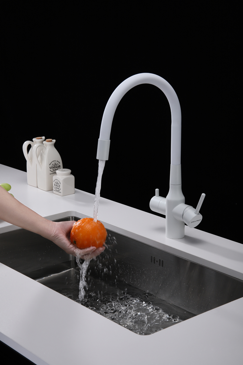Высокий гибкий излив из силикона, вращающийся на 360 градусов, обеспечивает легкое мытьё и наполнение высокой посуды и ваз. Крепление излива с помощью магнитного держателя обеспечивает надёжную фиксацию.