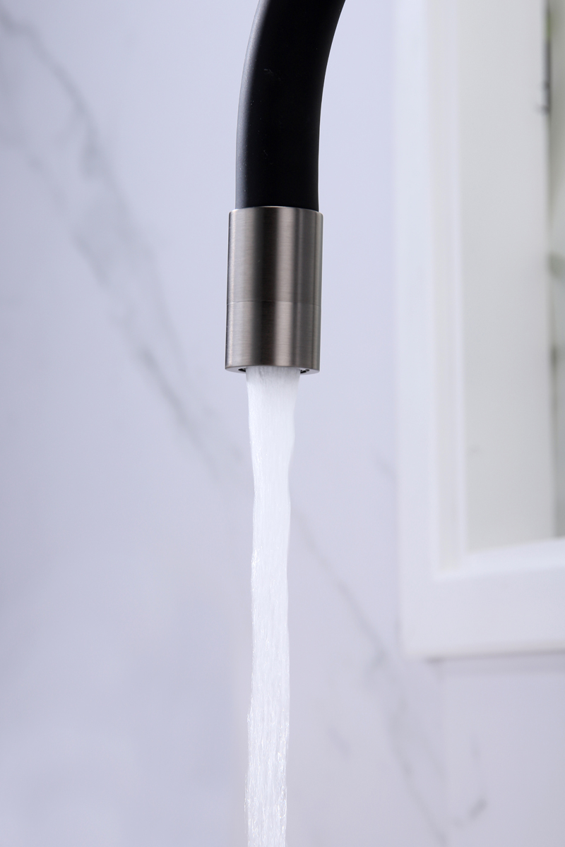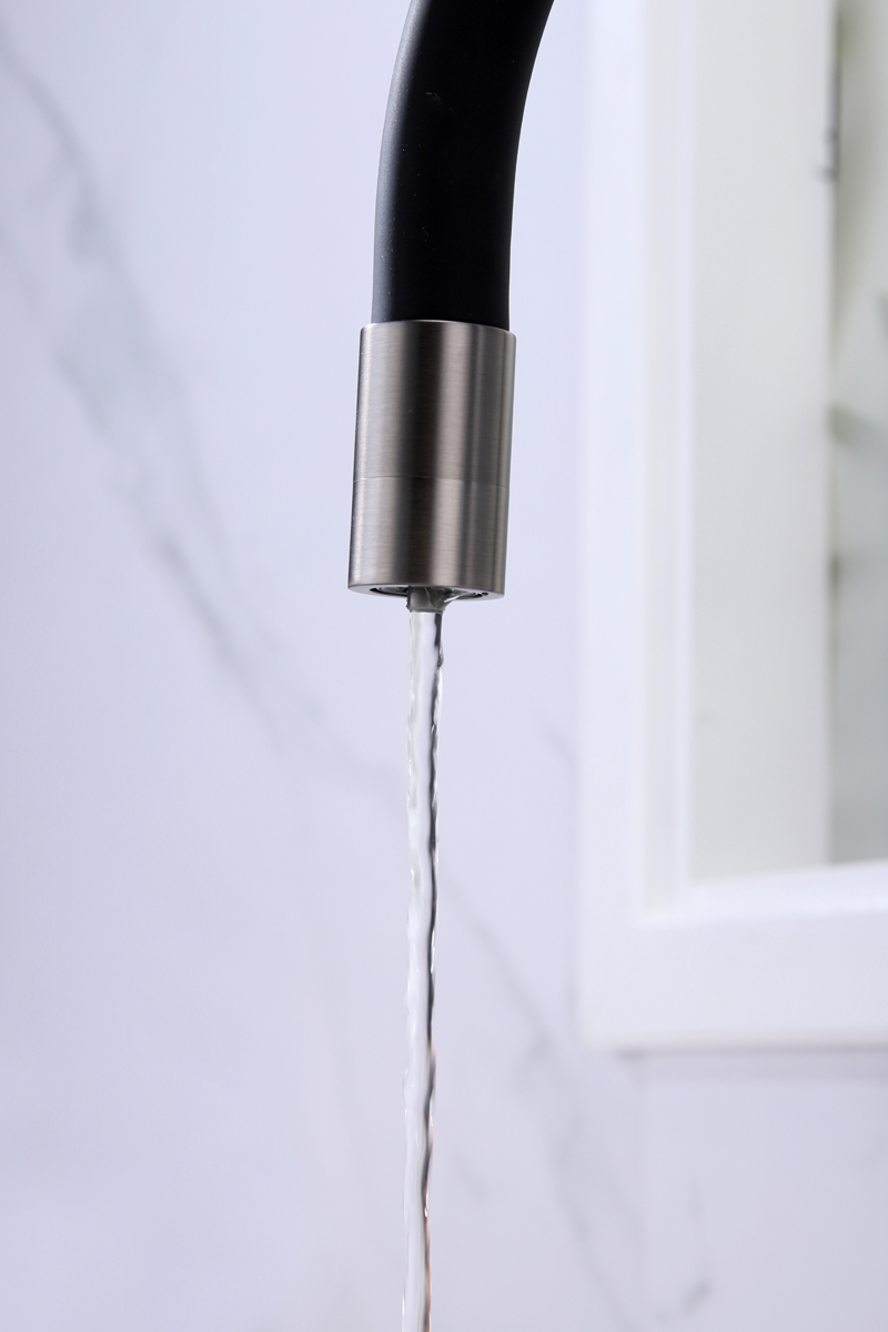 Высокий гибкий излив из силикона, вращающийся на 360 градусов, обеспечивает легкое мытьё и наполнение высокой посуды и ваз. Крепление излива с помощью магнитного держателя обеспечивает надёжную фиксацию.