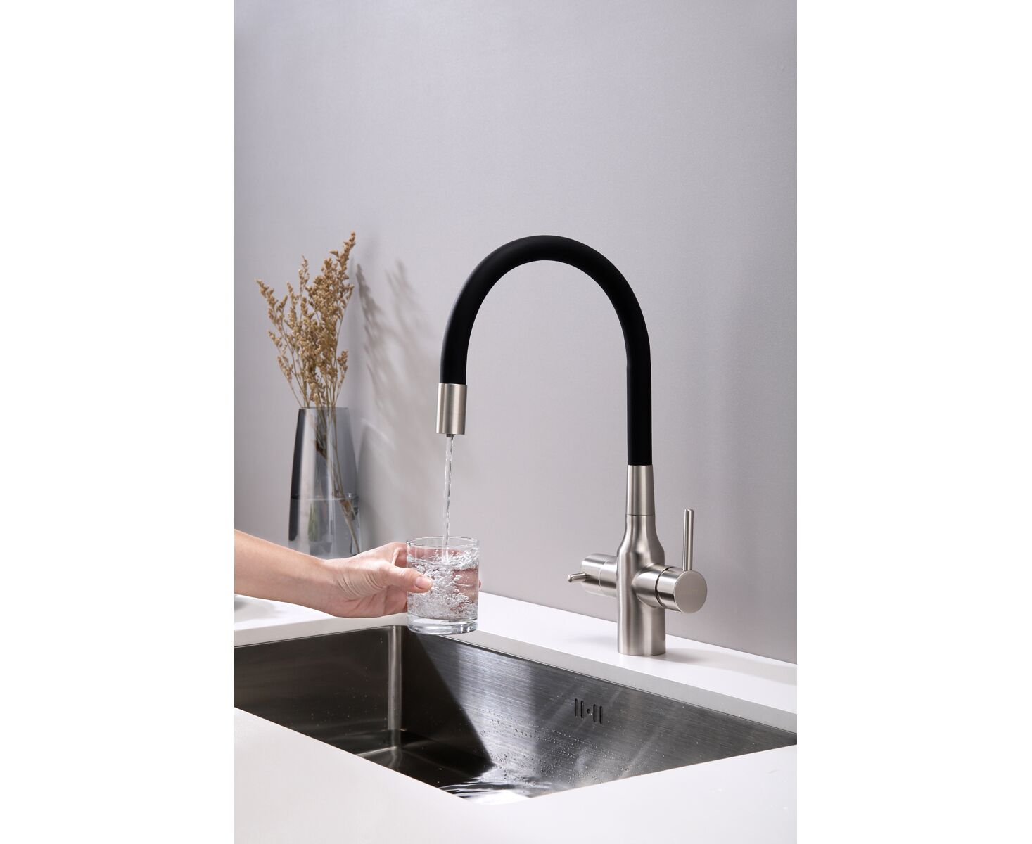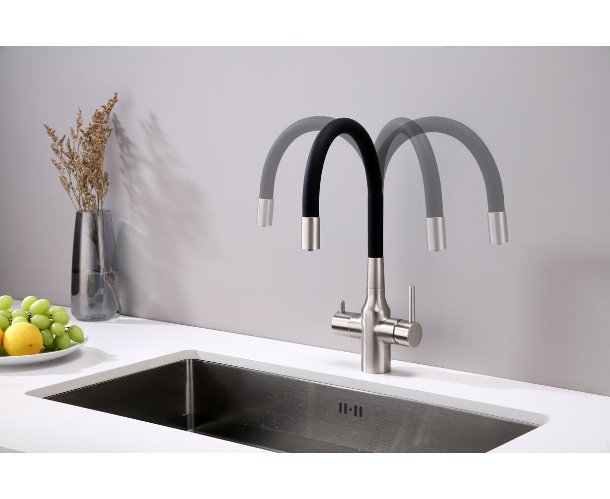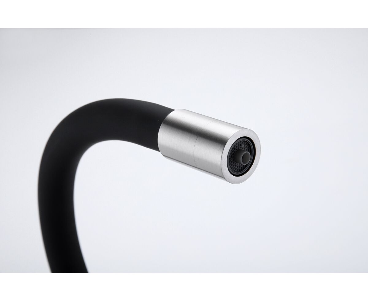 Высокий гибкий излив из силикона, вращающийся на 360 градусов, обеспечивает легкое мытьё и наполнение высокой посуды и ваз. Крепление излива с помощью магнитного держателя обеспечивает надёжную фиксацию.