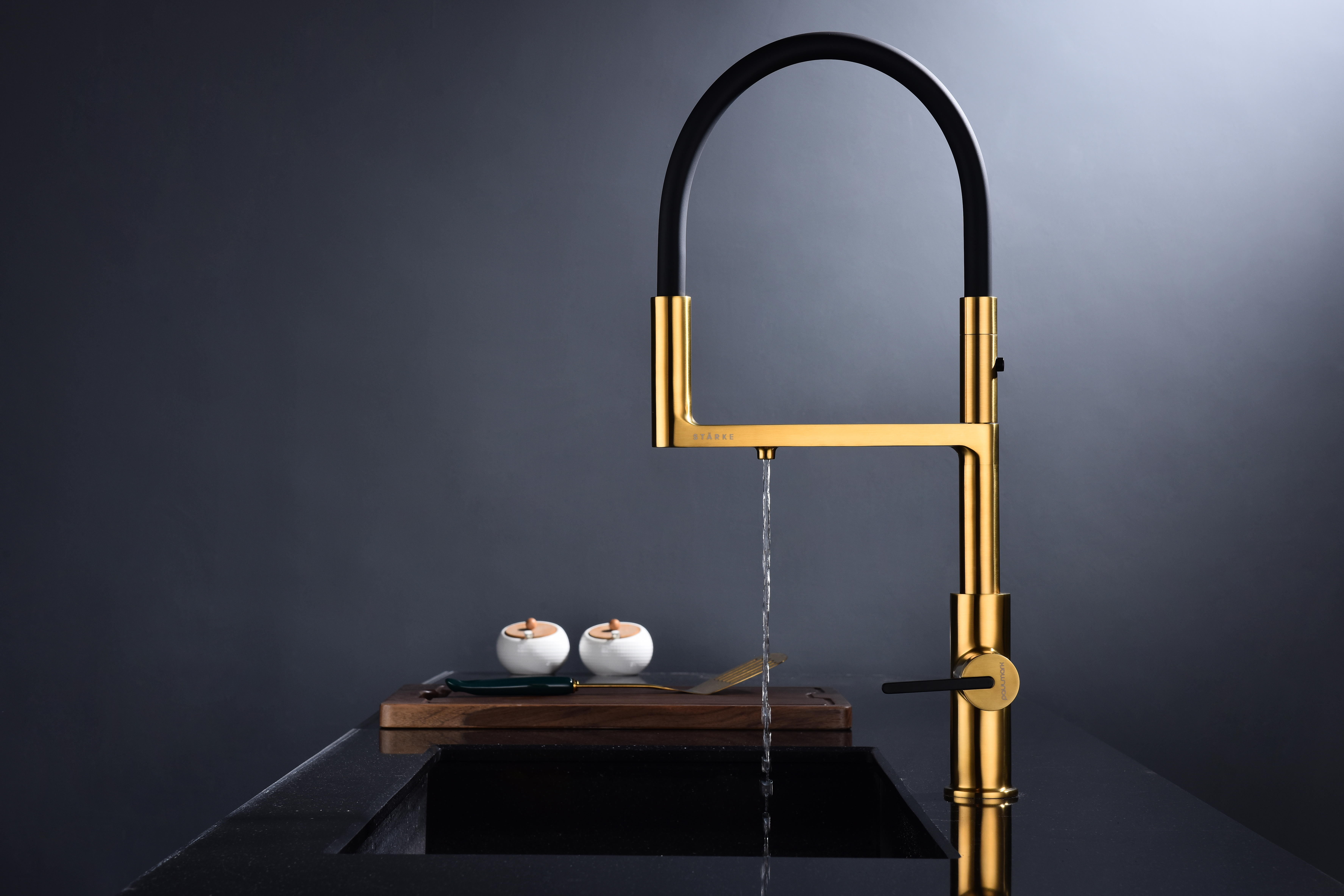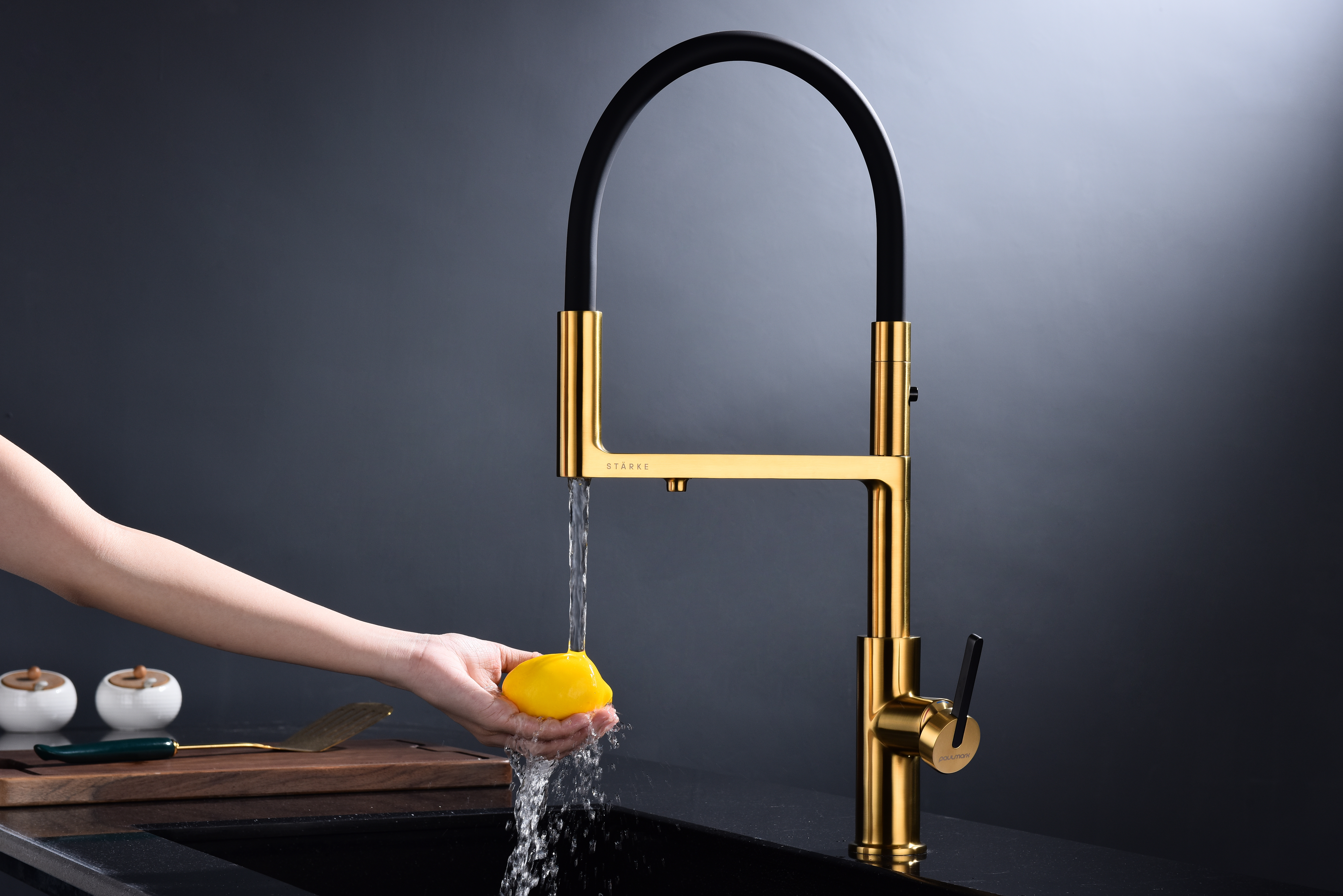 Многофункциональный смеситель для кухни TORNADO – модель премиальной серии «Starke» кухонной сантехники бренда Paulmark изготовлен из высококачественной латуни, которая отвечает высочайшим европейским стандартам качества, не содержит свинца, не разрушается со временем и безопасна для здоровья.